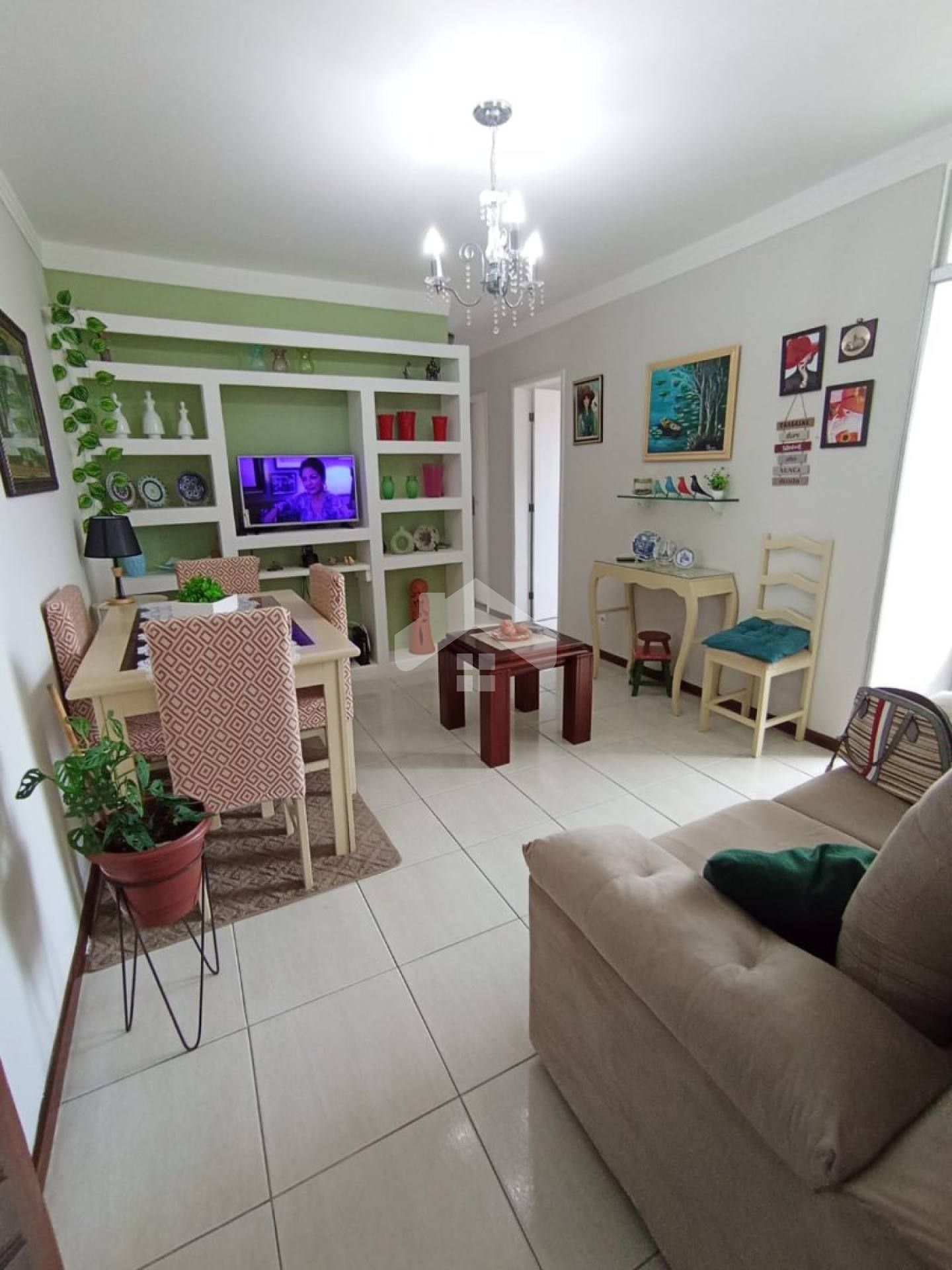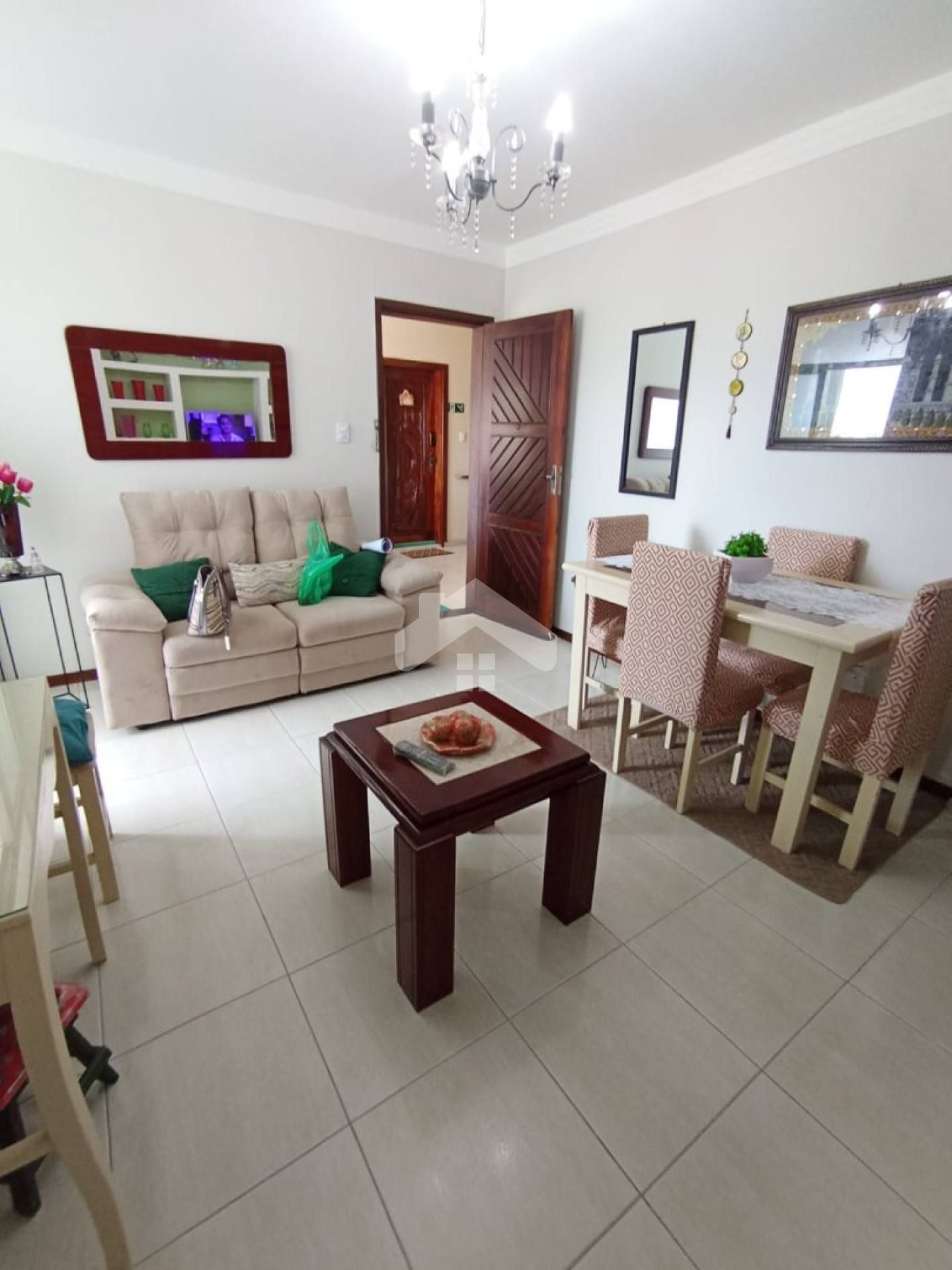Apartamento com 2 quartos, sala espaçosa, varanda com vista livre, cozinha, área de serviço, wc social, wc de serviço e uma vaga de garagem coberta.