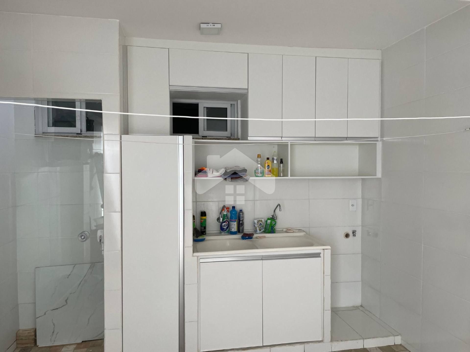 A área externa oferece uma garagem para dois veículos com portão eletrônico e área de serviço com armários planejados. Portas, janelas   e portões em alumínio branco garantem durabilidade.