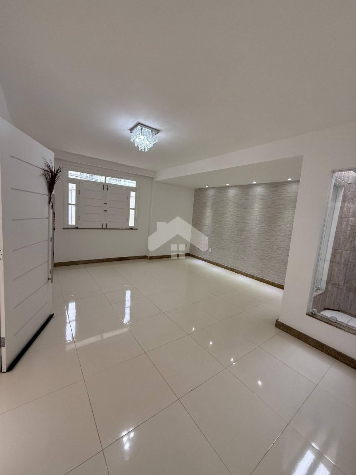 A cozinha, com móveis planejados, já inclui cooktop e forno embutidos, além de uma elegante cristaleira em vidro espelhado. A casa também já vem com três ar-condicionados split instalados, espelhos, lustres e cortineiros.