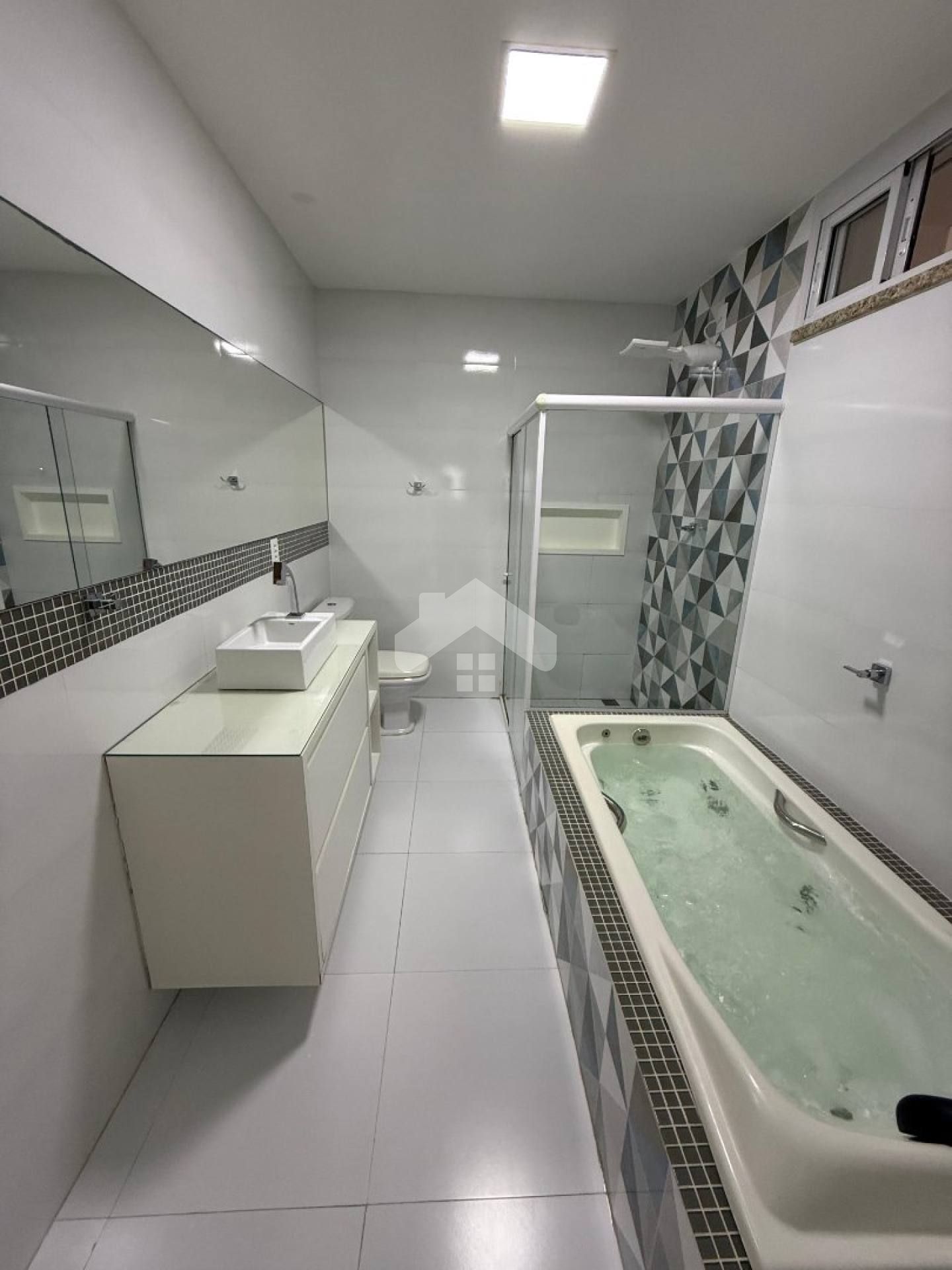 A residência possui 3 quartos, sendo duas suítes. Uma das suítes é um refúgio de relaxamento com banheira de hidromassagem.