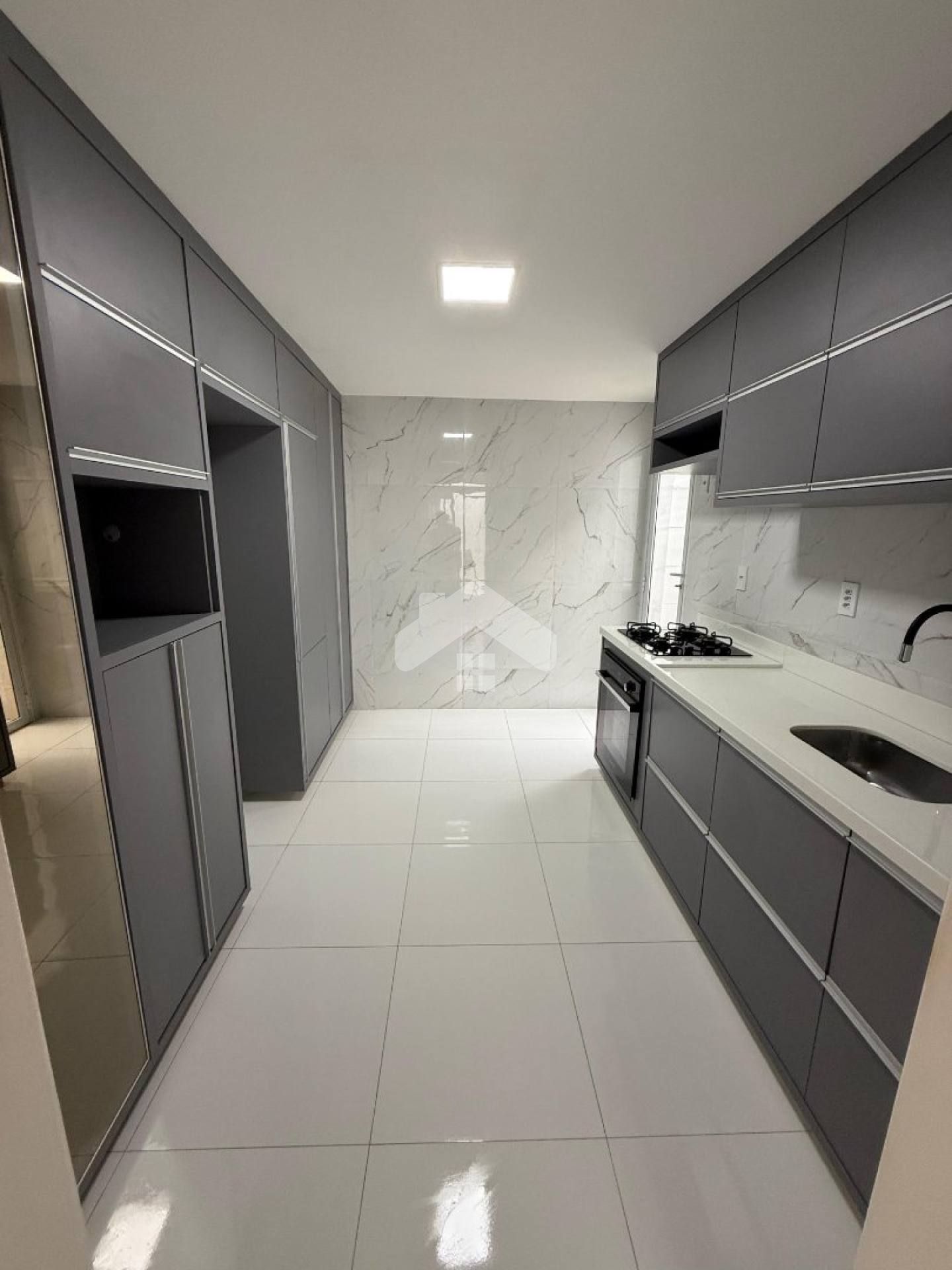 O interior é semi-mobiliado. Todos os pisos e revestimentos são em porcelanato, proporcionando um visual moderno.