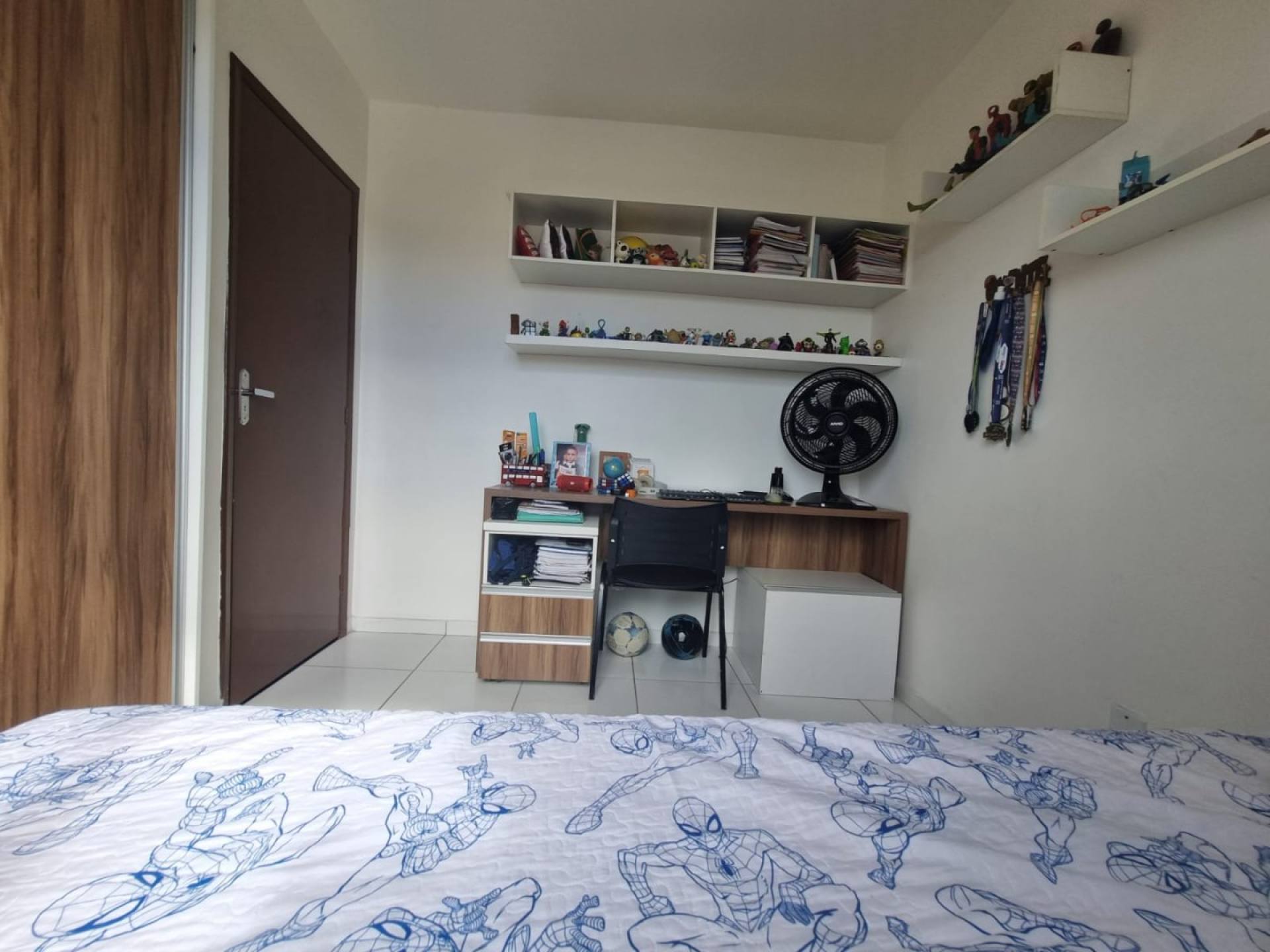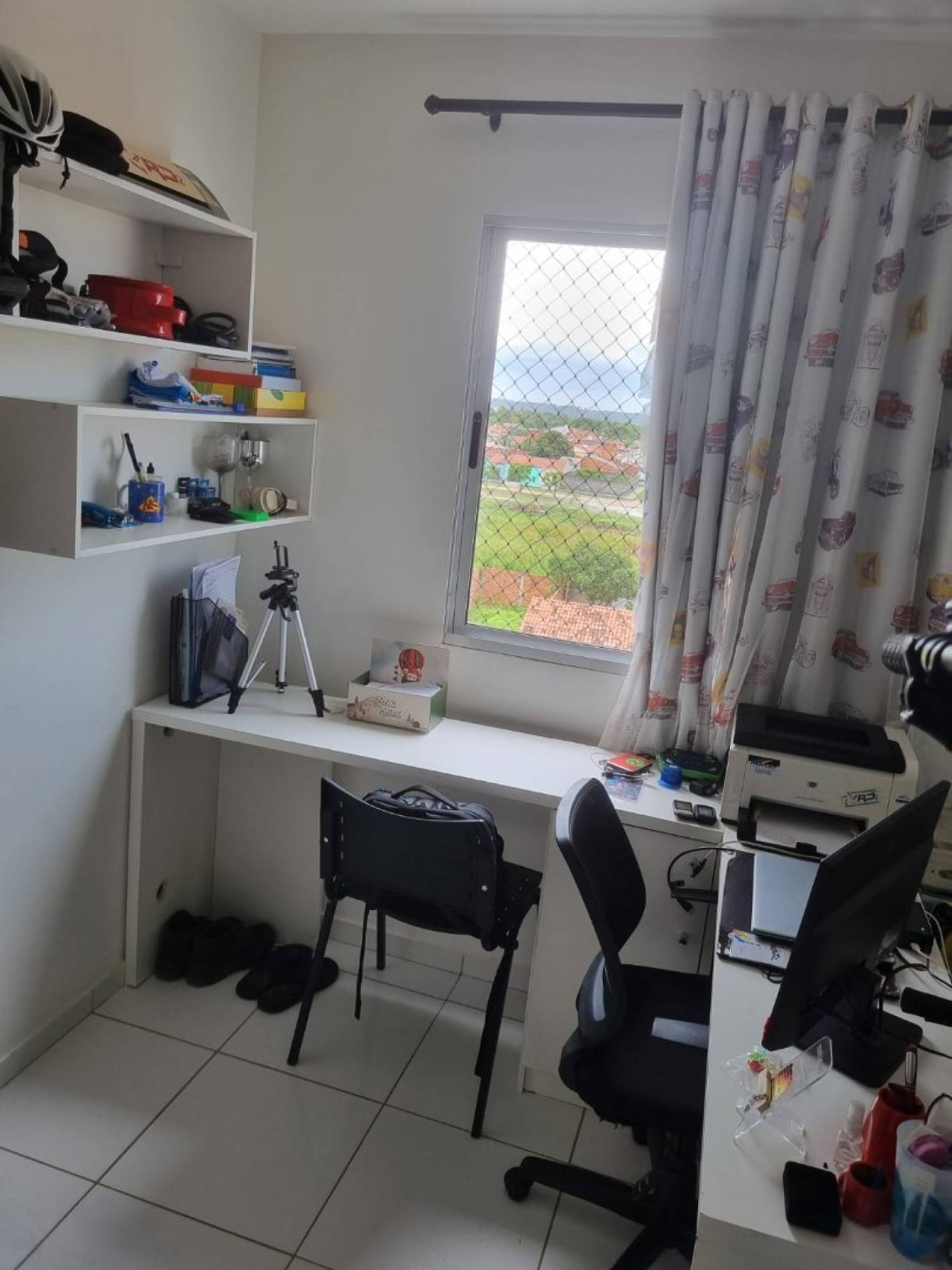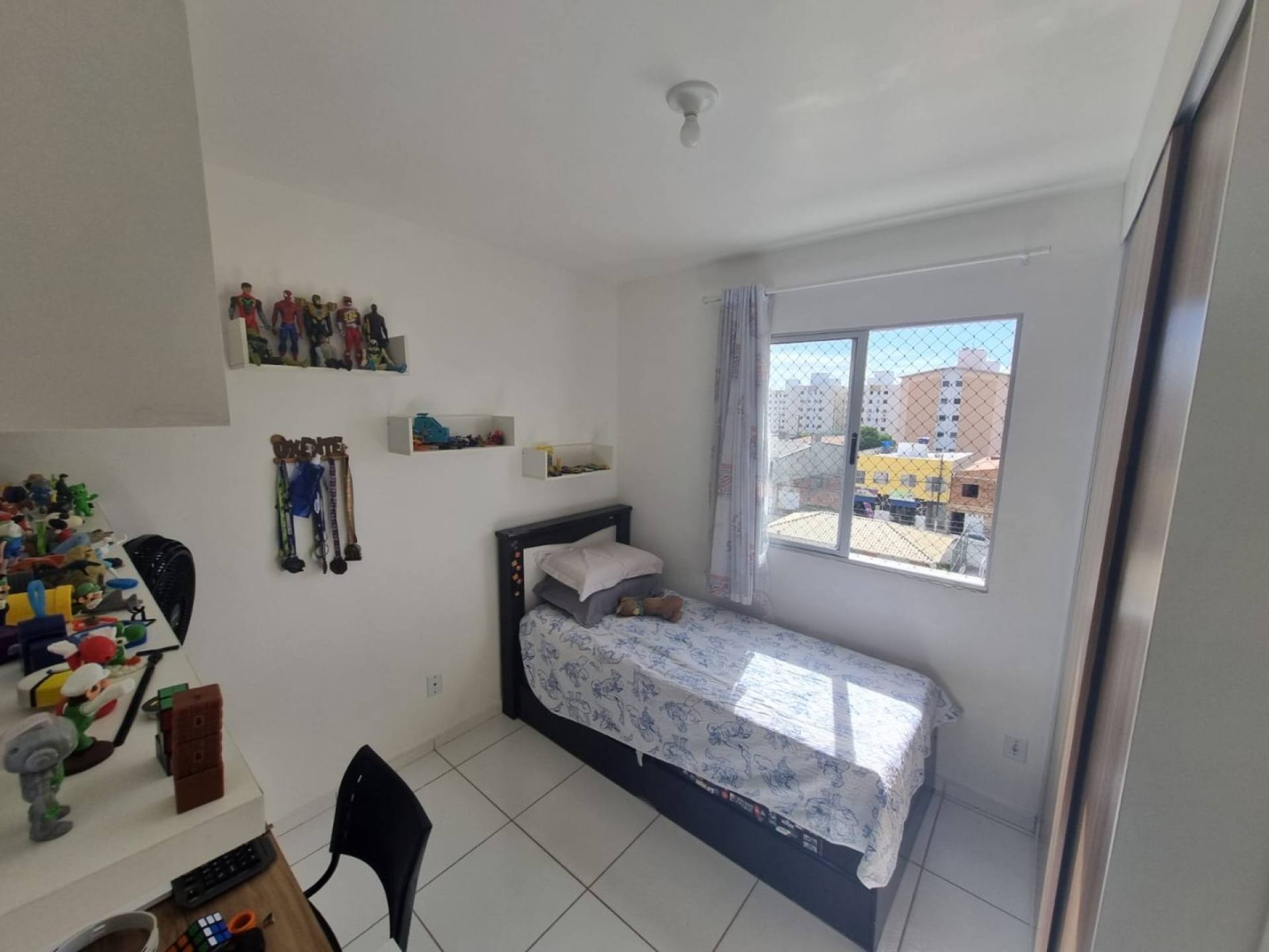 Apartamento com 3/4, sala ampla, wc social, cozinha, área de serviço e vaga de garagem coberta.